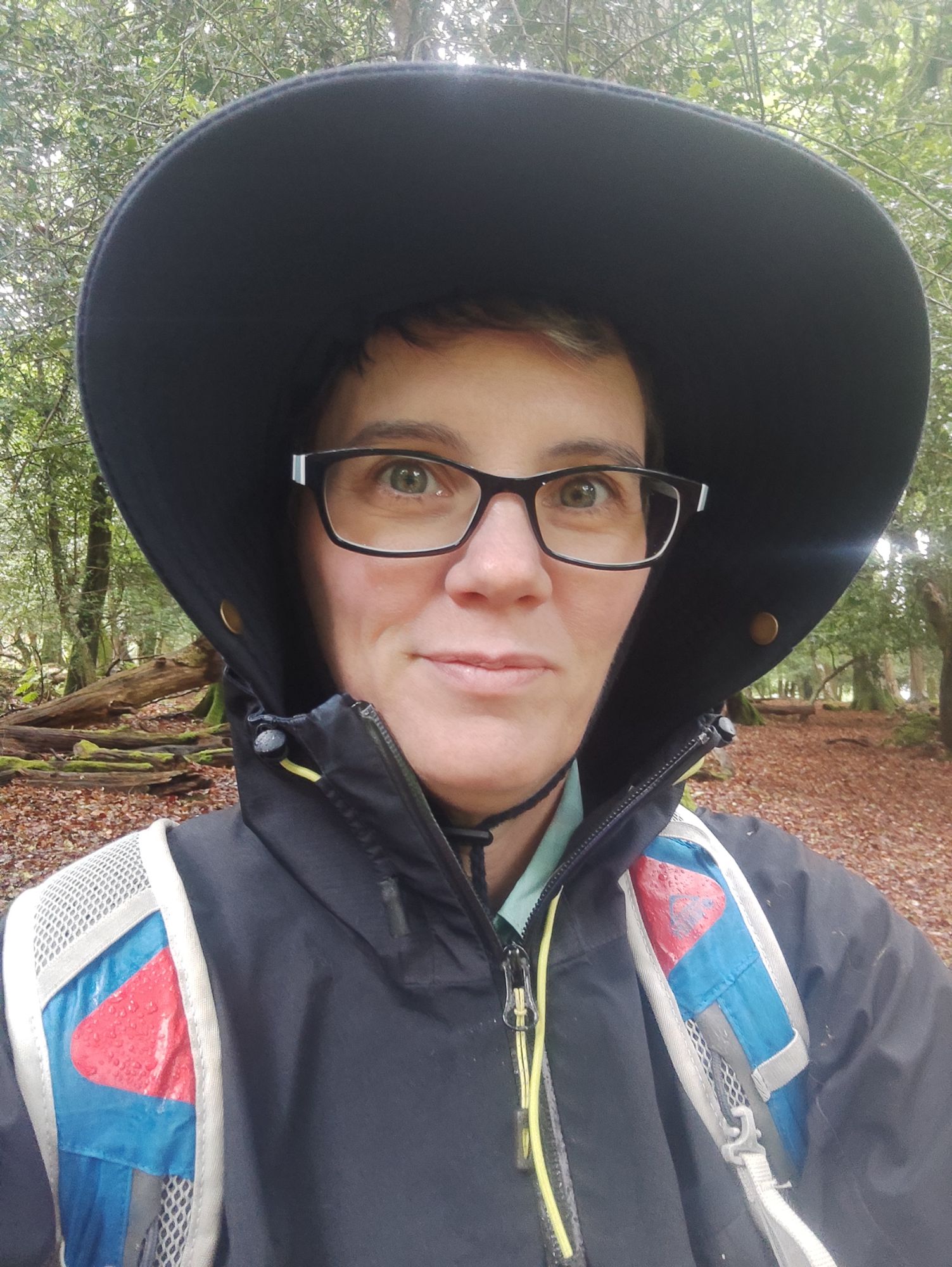 Je me décide aussi à faire une petite randonnée histoire de bouger et de profiter du New Forest National Park même sous la pluie… Je patiente malgré tout un petit moment dans la voiture puis quand le ciel se dégage un peu, je m’équipe : un chapeau et une gore-tex me protègent bien de la pluie…