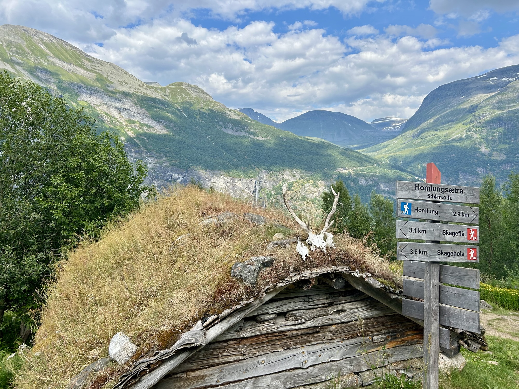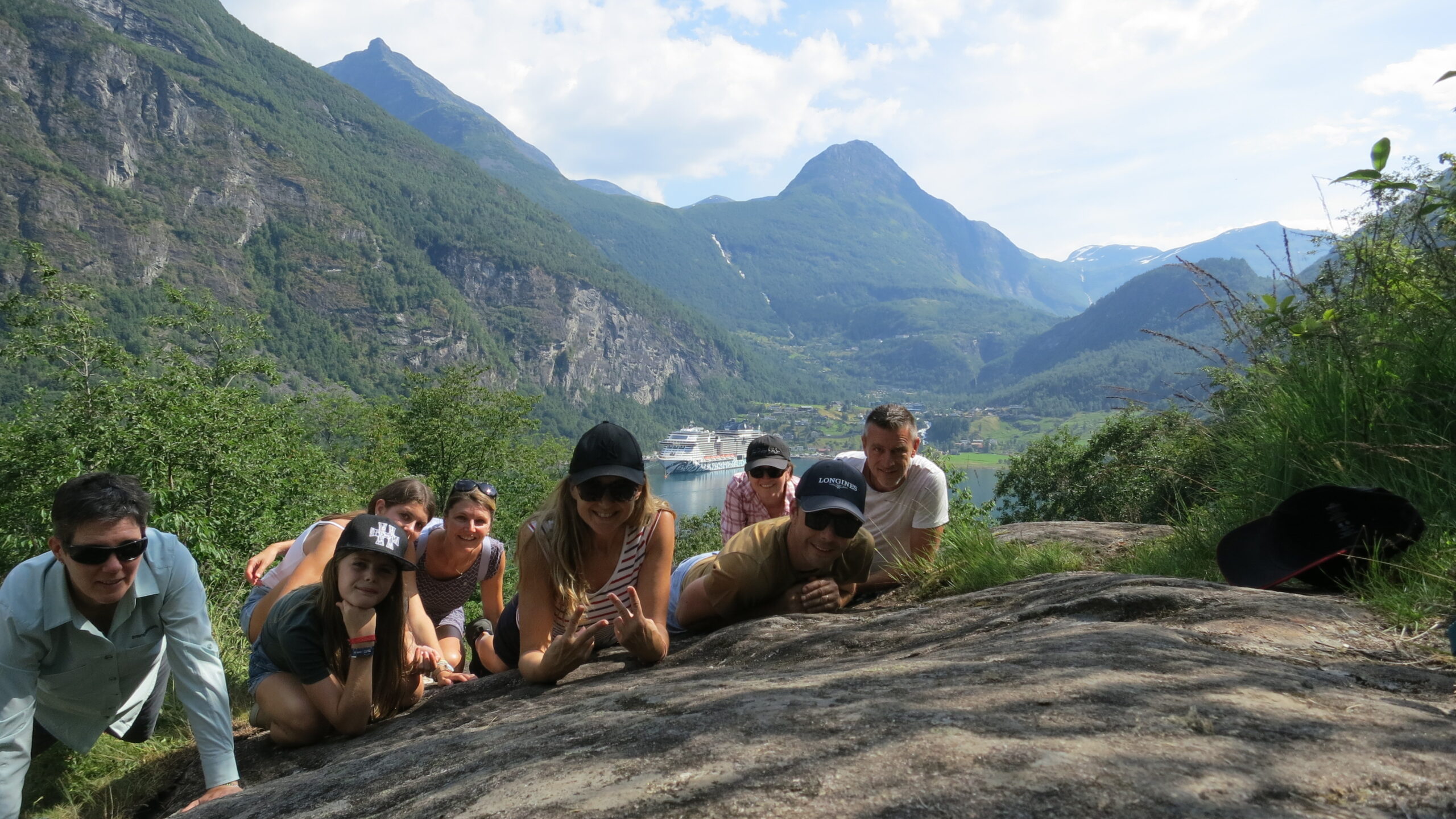 Nous profitons de cette escale pour nous dégourdir les jambes et randonnons jusqu’à Homlungsaetra. La pente est raide (550m de dénivelé positif sur 5,5km de montée) et bien difficile sous le soleil mais offre de très beaux points de vue sur le fjord. Au fil des kilomètres, les troupes s’écrèment; nous ne serons que 4 valeureux randonneurs à grimper jusqu’au sommet.