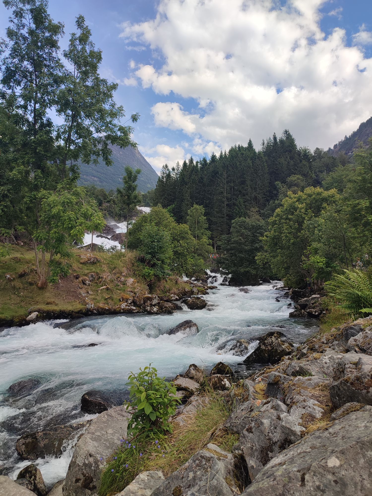 Mardi 22 juillet, nous nous levons aux aurores pour voir l’arrivée dans les fjords. Après une brève escale à Hellesylt nous débarquons à Geiranger. Les paysages sont vraiment sublimes, le soleil est au rendez-vous, il fait même très chaud !