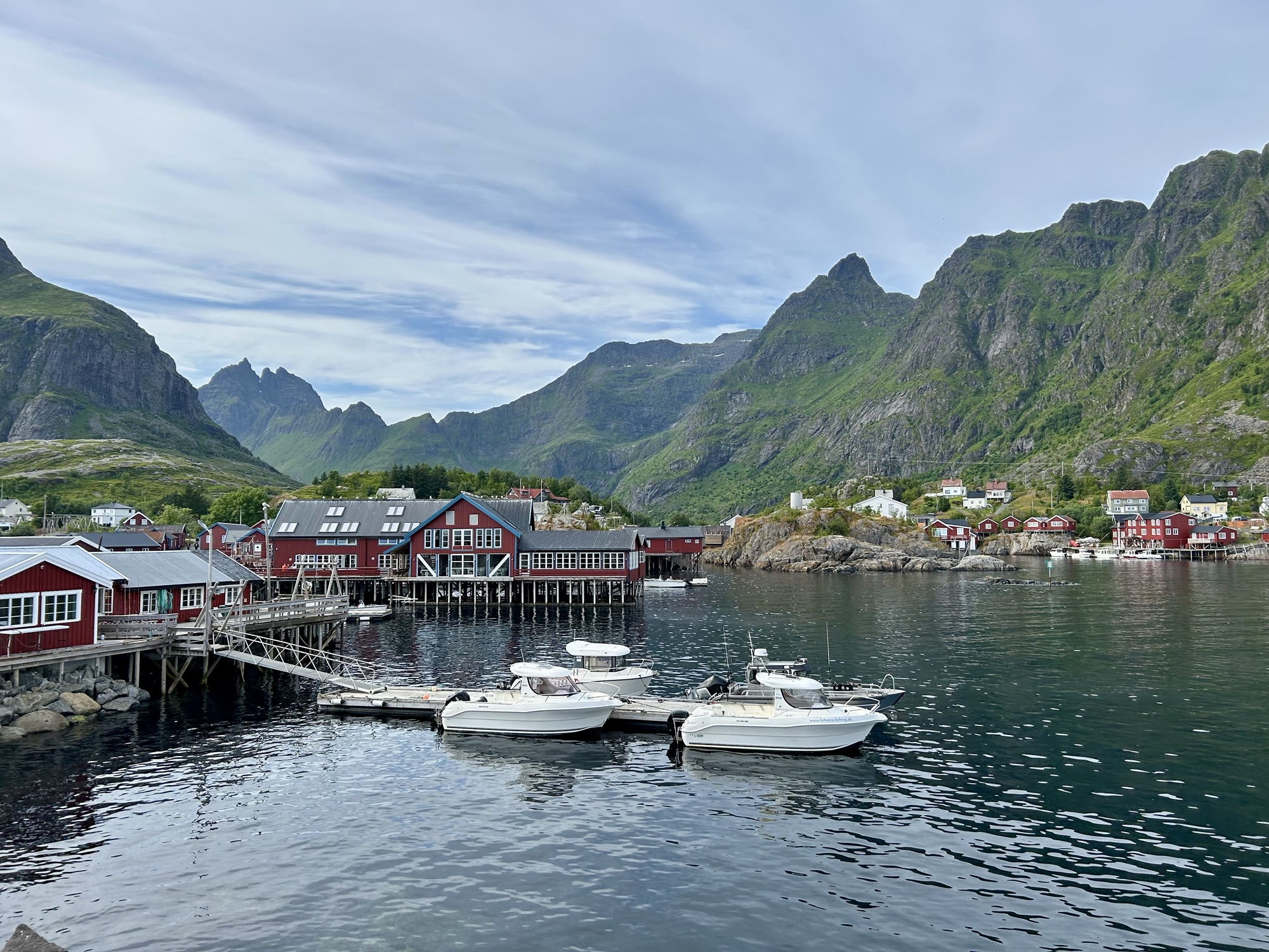 Après une journée de transit à poireauter dans les aéroports de Copenhague et d’Oslo, nous voici enfin arrivées aux îles Lofoten, que nous avons rejointes depuis la ville côtière de Bodo par le ferry.