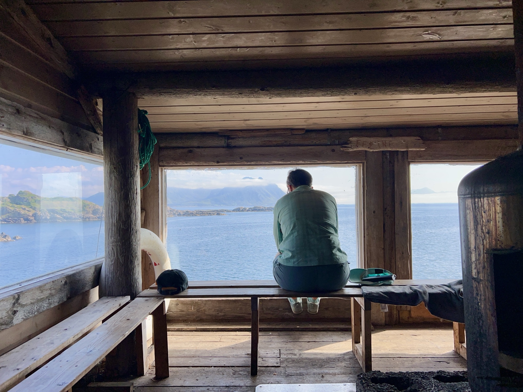 Nous faisons donc quelques arrêts en bord de route, marchons jusqu’à une petite cabane en bois en bord de rivage et nous y enfermons pour admirer la mer. Cette cabane est accessible à tous, dispose d’un poêle à bois pour se réchauffer et de bancs pour éventuellement y passer la nuit. Beaucoup de cabanes de ce type sont disponibles en Norvège.
