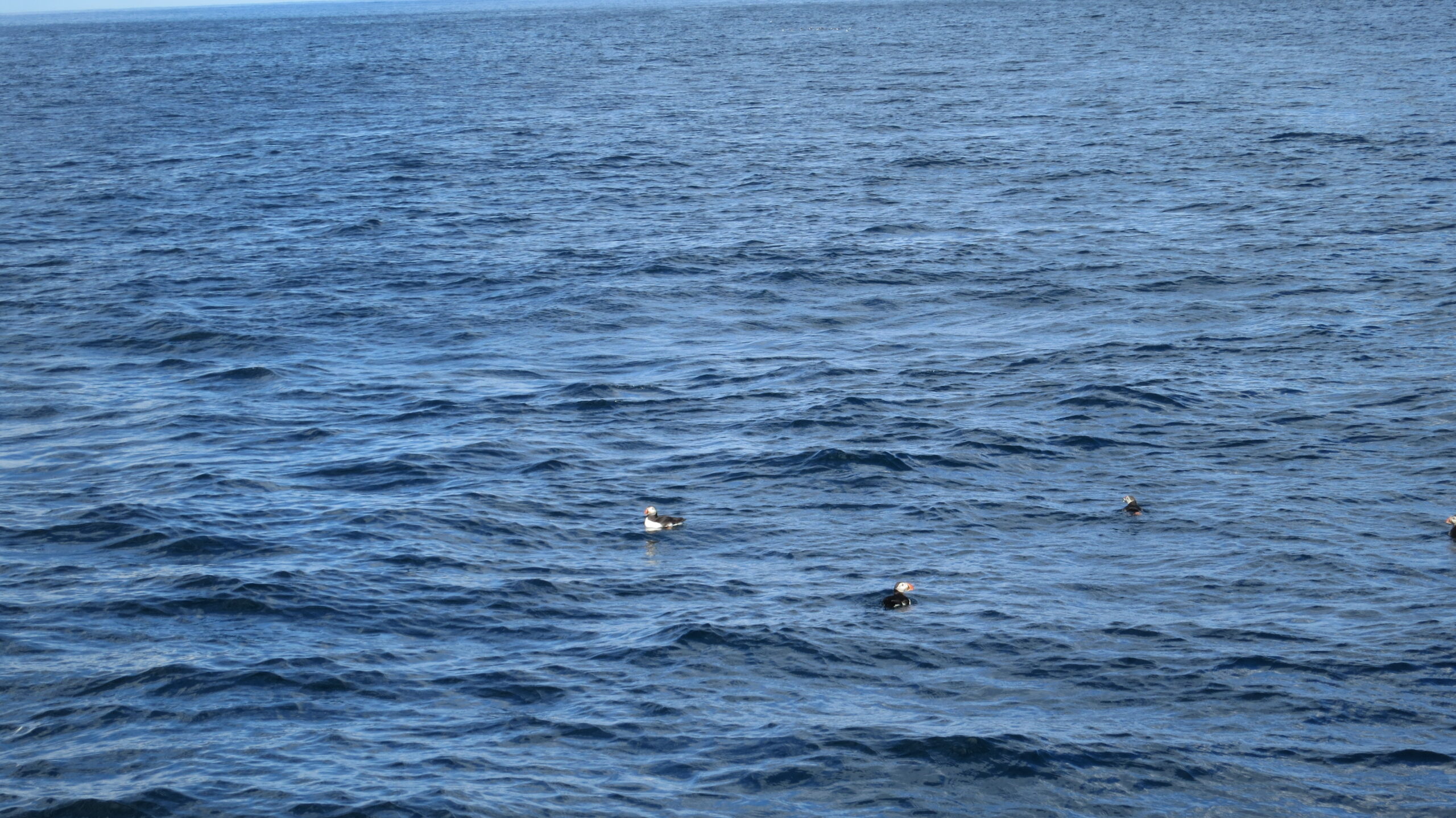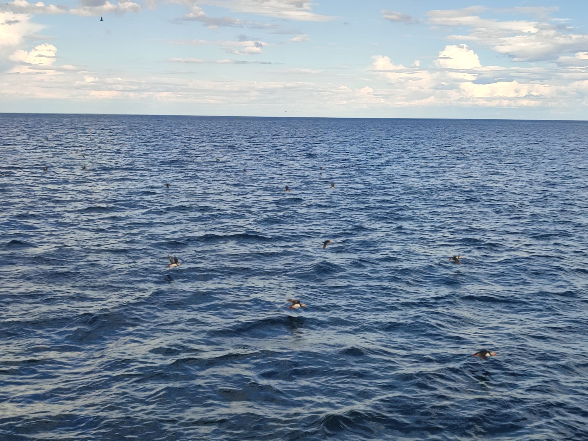 Le temps est toujours au grand bleu pour notre tour en mer autour de l’ilot qui abrite un nombre impressionnant de macareux et leurs nids dans des trous entourés d’herbe à flanc de falaise.