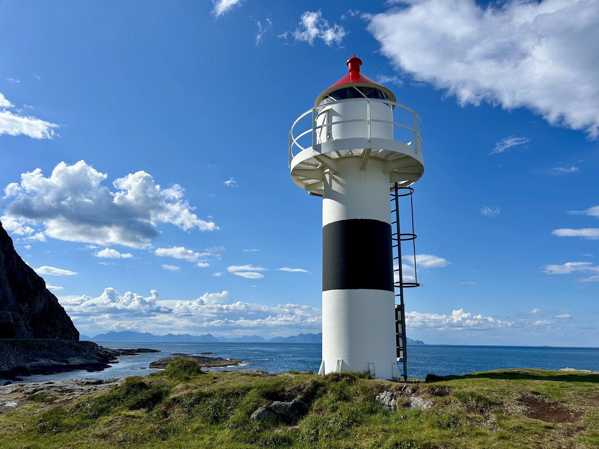 Nous croisons la route de l’express côtier à Risoyhamn puis faisons un arrêt à Borhella fyr et son phare typique.
