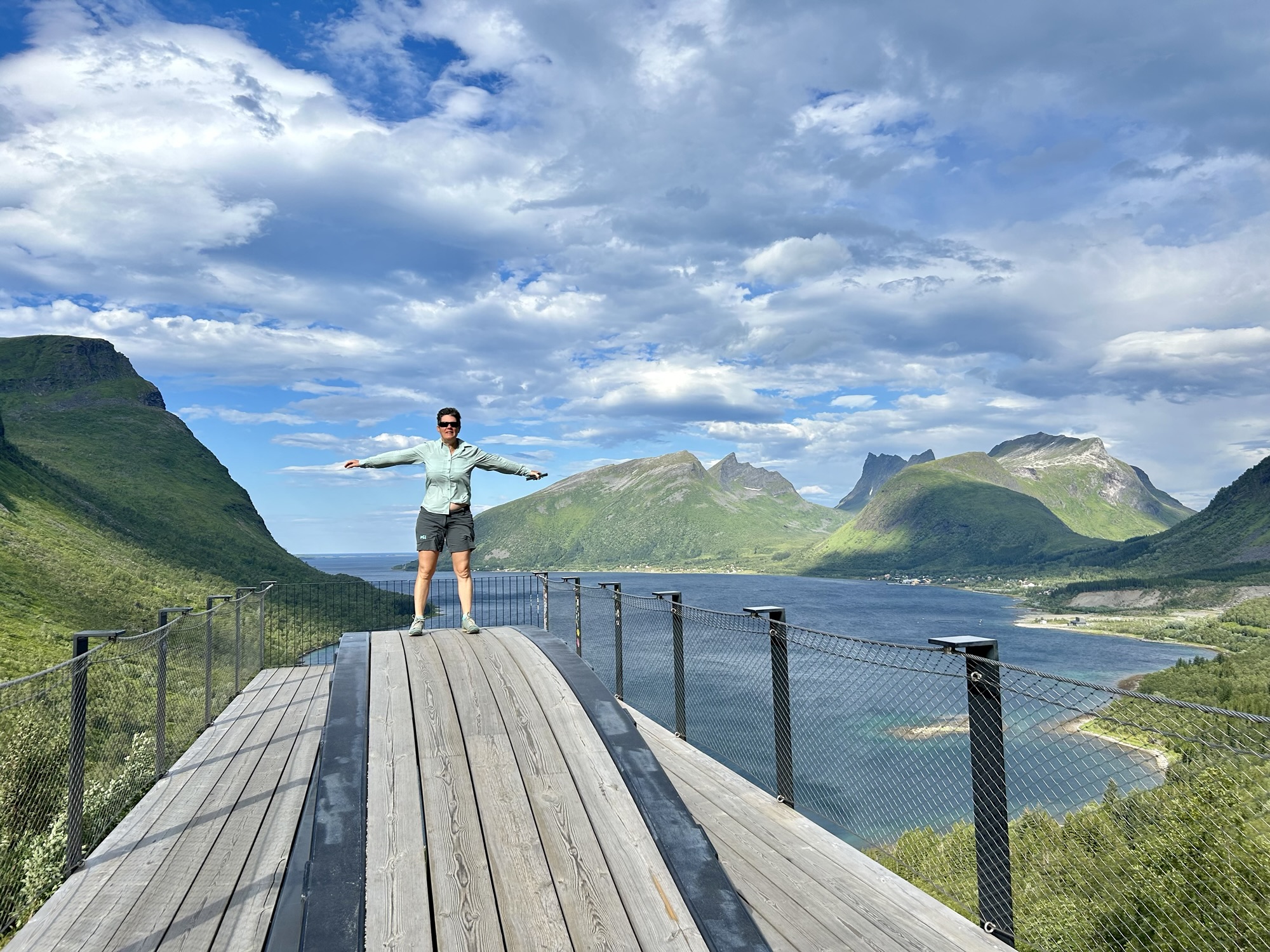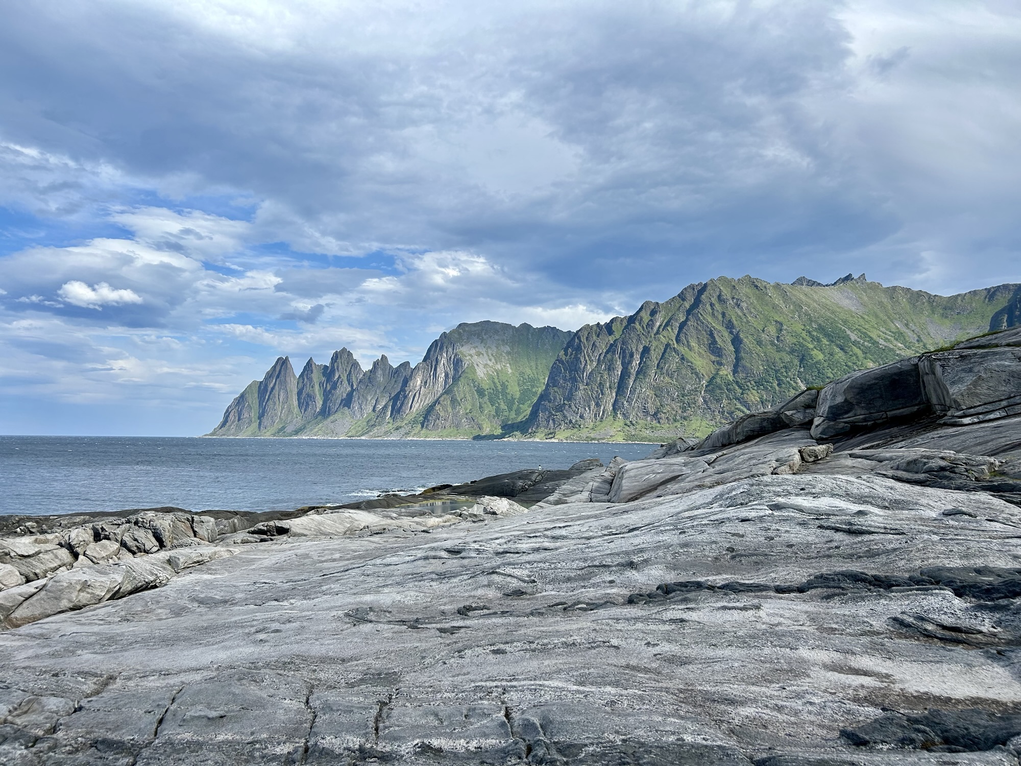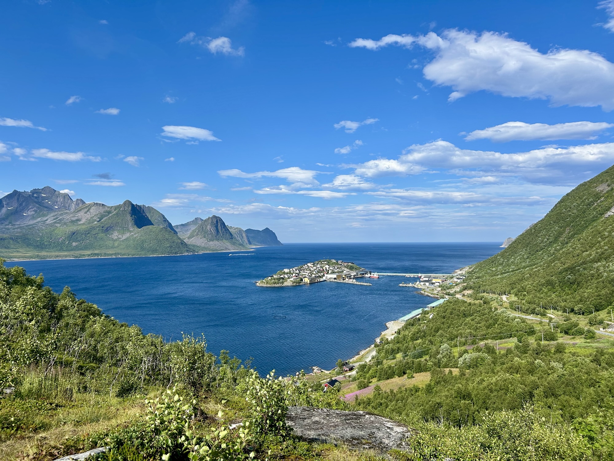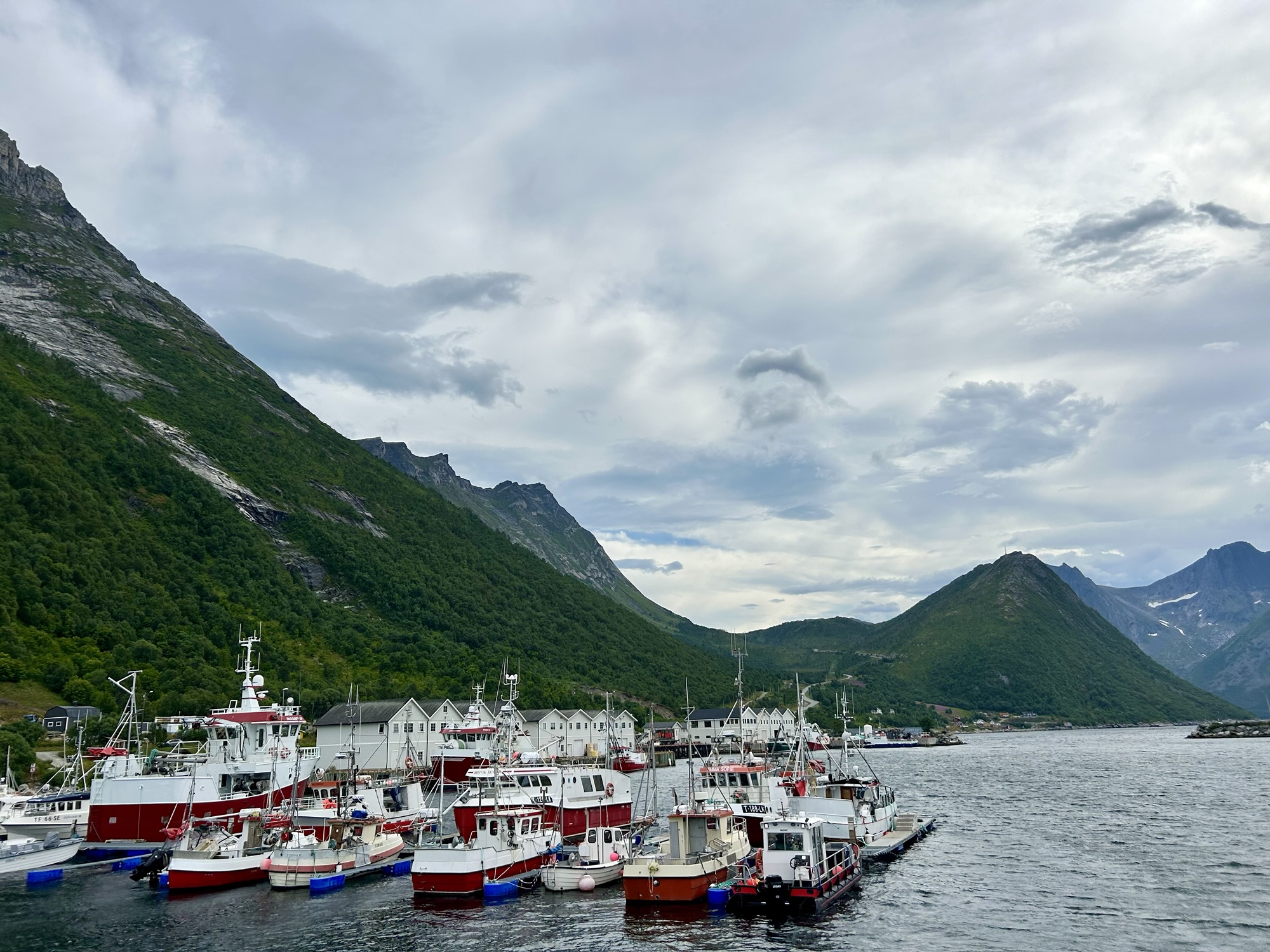 Hier en fin d’après-midi, nous avons quitté les Vesteralen et avons pris le ferry depuis Andenes jusqu’à Gyllefjord sur l’île de Senja. L’arrivée dans le fjord est une fois de plus magnifique. Notre logement, situé dans un autre fjord de l’autre côté de la montagne, nous offre également de splendides panoramas…