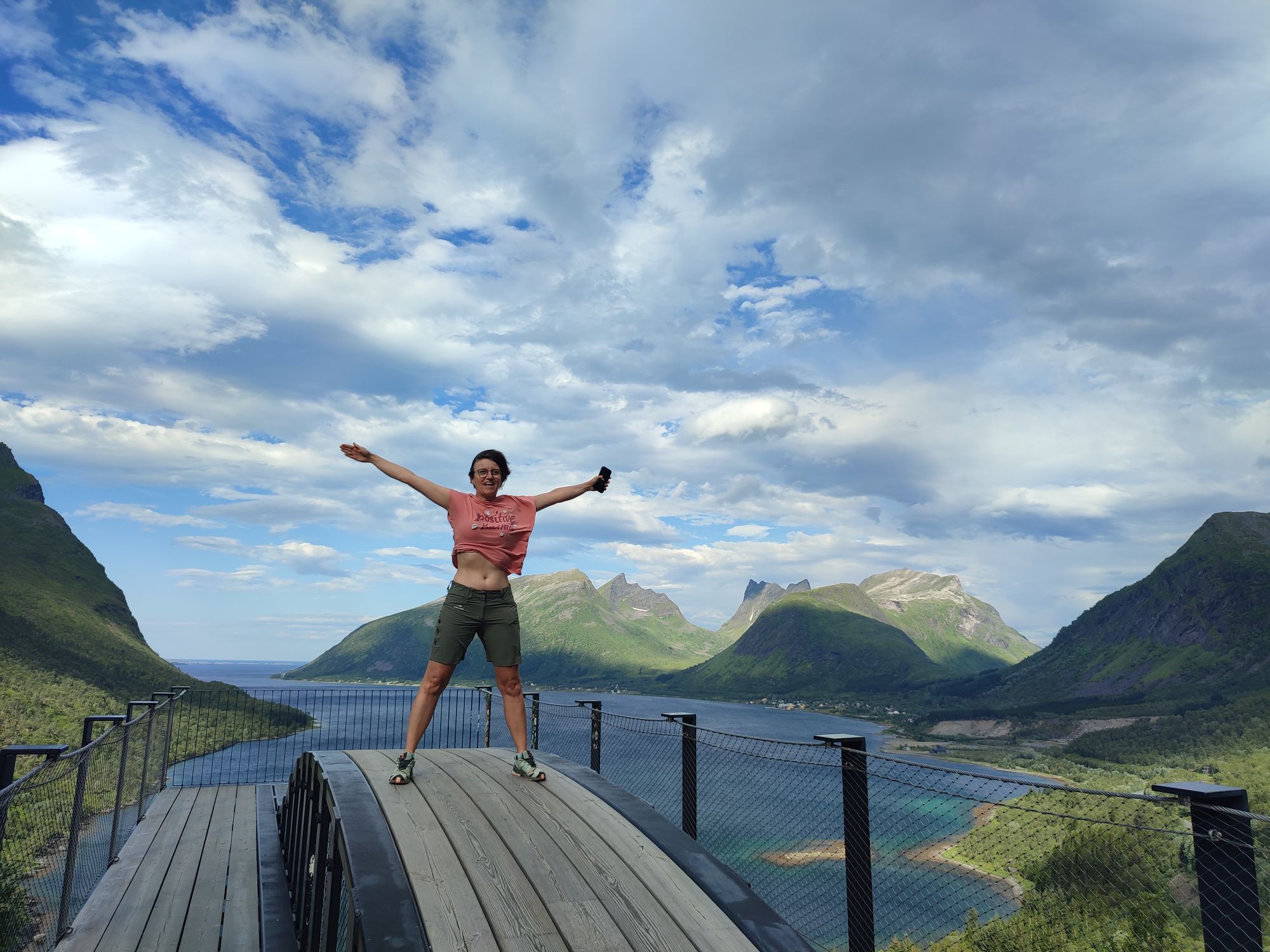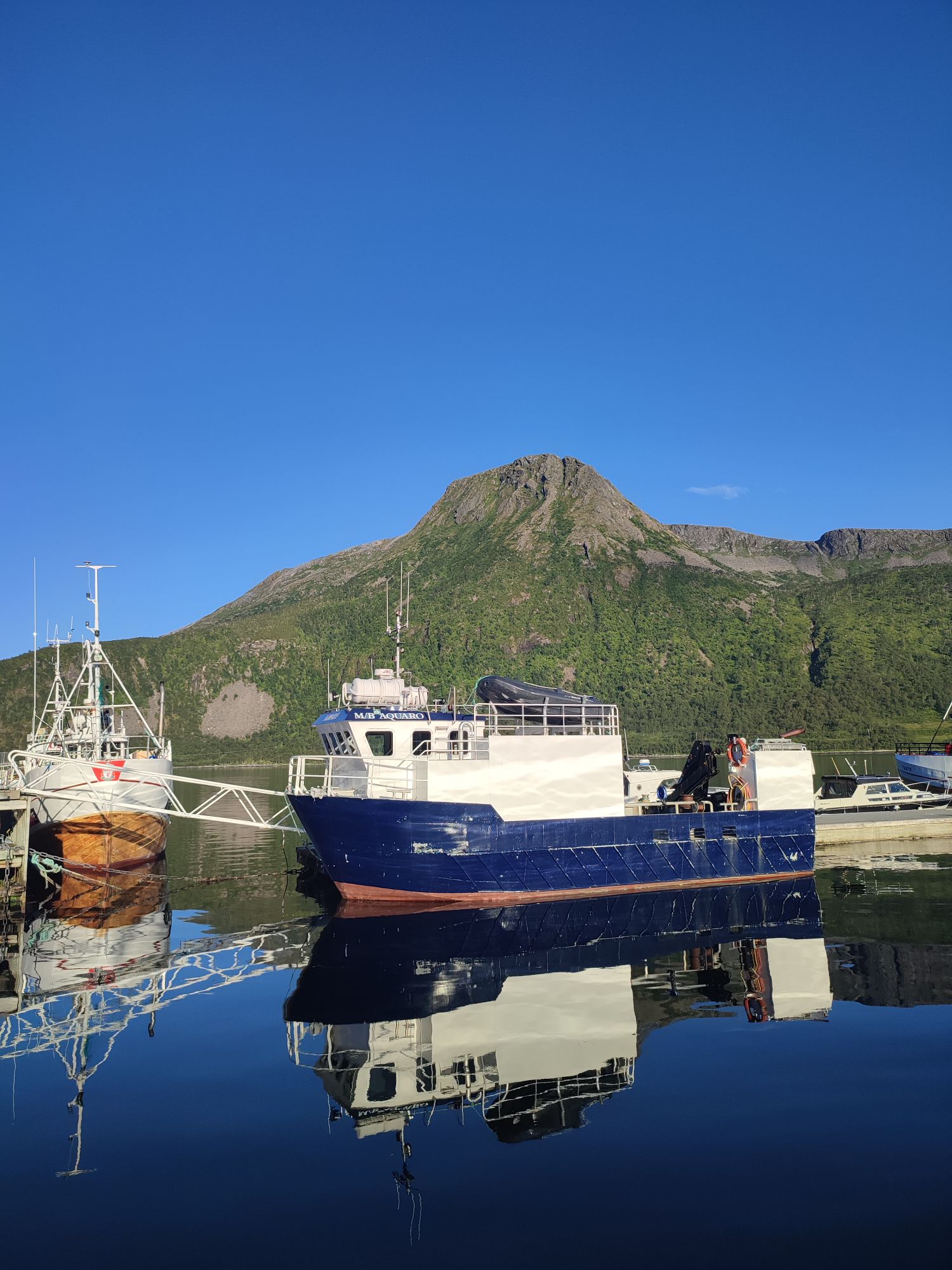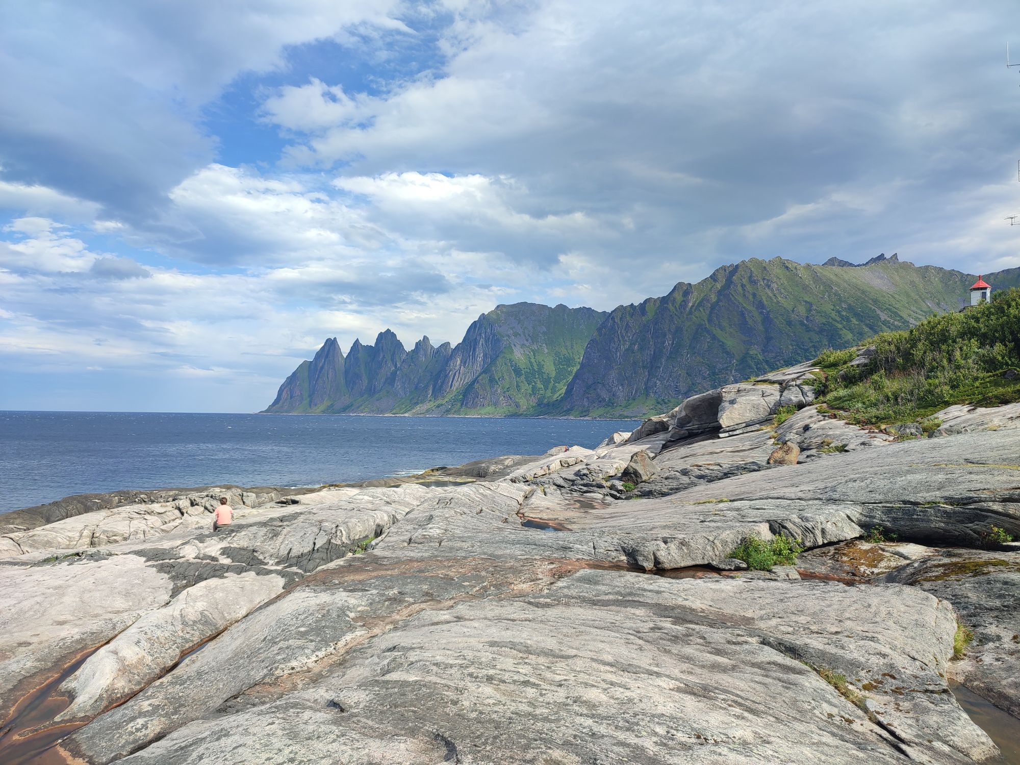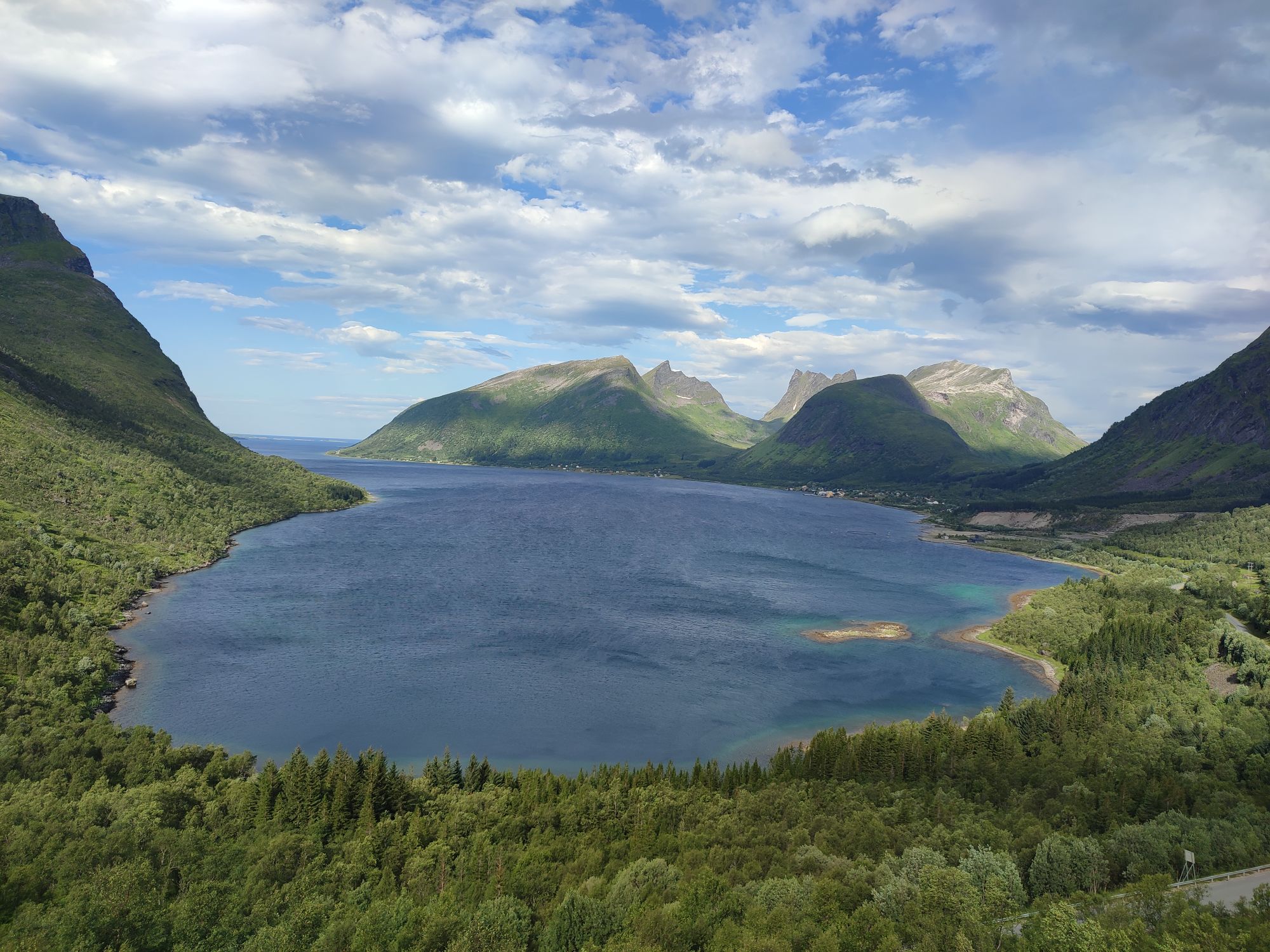Hier en fin d’après-midi, nous avons quitté les Vesteralen et avons pris le ferry depuis Andenes jusqu’à Gyllefjord sur l’île de Senja. L’arrivée dans le fjord est une fois de plus magnifique. Notre logement, situé dans un autre fjord de l’autre côté de la montagne, nous offre également de splendides panoramas…