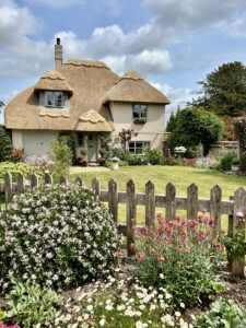 Ce mardi matin 3 juin, la pluie s’est invitée (et le vent avec…) ! Nous chargeons le vélo de Carole dans la petite voiture de location, il ne reste plus beaucoup de place pour les jambes de Carole côté passager… Après un petit « Artichette » dans un salon de thé à Blandford Forum, nous déjeunons dans …