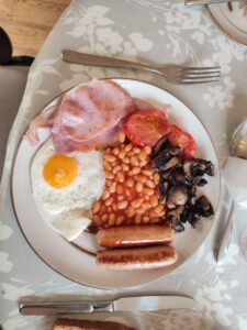 Enfin un vrai temps anglais ! Ce matin, la pluie tombe bien au réveil… Mais heureusement nous commençons la journée avec un véritable english breakfast que nous a préparé June ! C’était très bon ! Nous déjeunons en compagnie de Barry, un cycliste écossais qui vit au Sud de Poitiers. Il arrive de Inverness en …